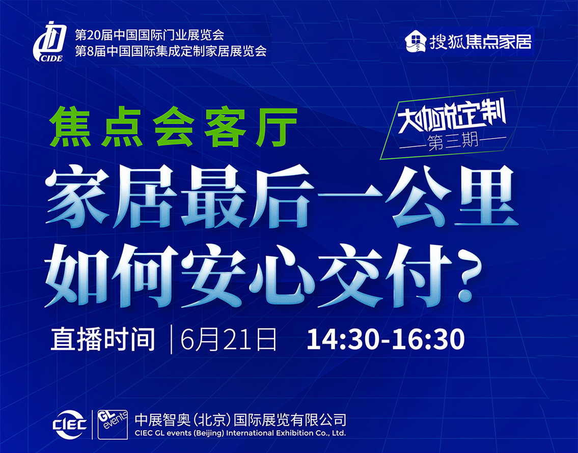 活動(dòng)簡介:三分產(chǎn)品,七分安裝!對(duì)于建材家居行業(yè)而言,尤其注重上門施工這一環(huán)節(jié)。如何保證送配裝的高效,如何給予用戶品質(zhì)交付,這對(duì)施工的工藝、工人的專業(yè)性等提出更高要求,同時(shí)也考驗(yàn)著企業(yè)的產(chǎn)品研發(fā)生產(chǎn)和供應(yīng)鏈整合能力。于此,CIDE北京門業(yè)與定制家居展聯(lián)合搜狐焦點(diǎn)家居,特別策劃“家居最后一公里,如何安心交付”主題沙龍活動(dòng),深挖家居企業(yè)最后一公里的交付價(jià)值,從而助力人們打造一個(gè)更高品質(zhì)的居家生活。