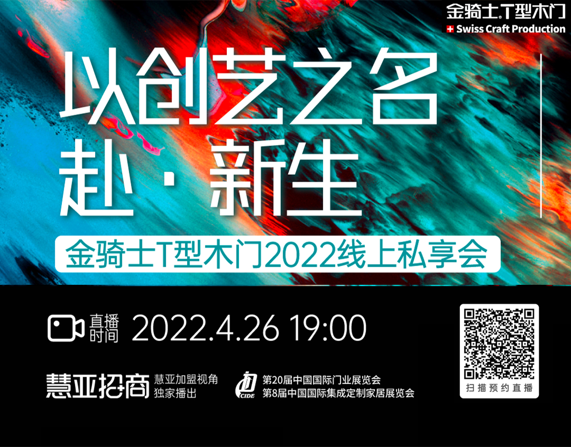 活動(dòng)簡介:以創(chuàng)藝之名?赴?新生——金騎士木門2022線上私享會(huì),4月26日(今晚19:00)邀您品鑒木門創(chuàng)藝臻品!