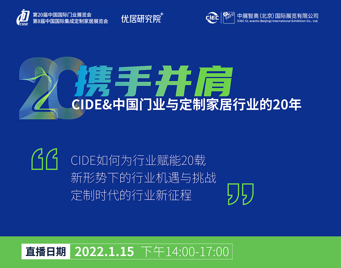 活動(dòng)簡介:從2002年到2022年,CIDE伴隨中國門業(yè)與定制家居行業(yè)走過了20年的風(fēng)雨歷程。時(shí)值CIDE中國國際門業(yè)展覽會(huì)20周年之際,CIDE中國國際門業(yè)展覽會(huì)20周年系列論壇,與行業(yè)大咖共話CIDE助力行業(yè)發(fā)展的崢嶸歲月,開啟行業(yè)新征程。