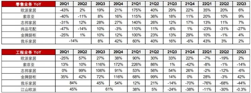 隨著地產(chǎn)企業(yè)流 動性緊張問題得到緩解疊加“保交付”政策催化,預計 22Q4 及 23 年竣工面積/前置 2 年施工面積的轉化率有望恢復,預計2023H1竣工企穩(wěn)有望帶動家居需求回暖,其中工程端業(yè)務的反應更明顯。
